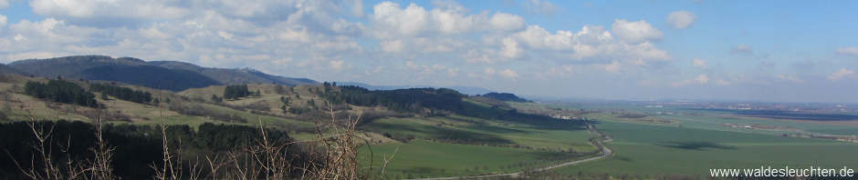Auf einer Infotafel steht über den Ziegenberg Folgendes: „Der Ziegenberg ist ein Teilstück der Nordrand-Aufrichtungszone des Harzes. Während der Heraushebung des Harzes wurden vorher horizontal liegende Schichten des Vorlandes steilgestellt bzw. übergekippt. Es überwiegen Schichten des Muschelkalkes.“ An dieser Stelle verlasse ich den Ziegenberg-Struvenberg-Höhenzug, gehe noch ein kurzes Stück an dessen südlichem Rand entlang und biege dann nach Südwesten durch das Hellbachtal ab. auf dem Weg zum Waldrand passiere ich ein Wildgehege mit Damwild. Schnöde drehen mir die Tiere den Hintern zu und gucken gelangweilt vor sich hin. Am Waldrand angekommen, schleicht ein Fuchs über den Weg, ganz langsam sogar. Er sieht mich nicht, ich bleibe stehen und bewege mich kaum, versuche nur, die Kamera herauszuholen. Beinahe ist es gelungen, da kommt mit Tempo ein Forstauto herangebrettert – der Fuchs verschwindet, ohne fotografiert worden zu sein. Schade, irgendwie. Wahrscheinlich ist das der einzige Moment des Tages, an dem an dieser abgelegenen Stelle ein Auto vorbeikommt. Nun ja – man kann nicht alles haben. Weiter geht es durch Wald, nun nach Westen Richtung Benzingerode. Sumpfmeisen begleiten meinen Weg, lassen sich aber ebenfalls nicht fotografieren; ich bin einfach zu langsam. Auf der Höhe von Benzingerode zweigt ein Weg nach Südwesten ab, weiter in den Wald hinein und steil bergauf. Diesen Weg gehe ich nun, um zum Stapenberg hinaufzuschnaufen. Ganz schön steil ist es hier! Am Wegrand liegen noch Schneereste. Verschwitzt und außer Puste habe ich es dann endlich geschafft: ich stehe auf dem Stapenberg, der von einem hübschen Rastplatz, ginsterbestanden, gekrönt ist. Leider hat man keine Aussicht auf das Harzvorland; ausschließlich über die südlich angrenzenden Waldzüge.